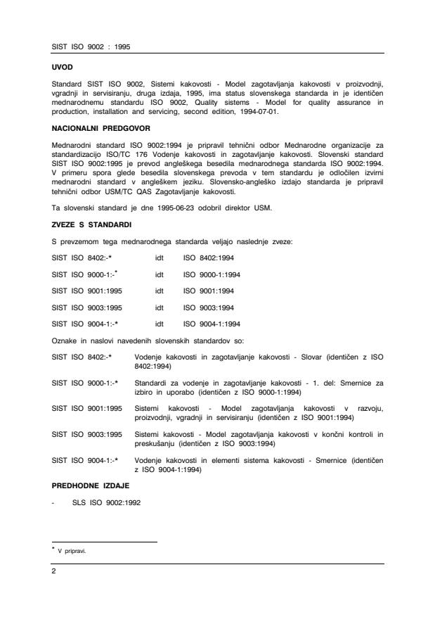 SIST ISO 9002:1995 has the following relationships with other standards: It is inter standard links to SIST ISO 9001:2000; is excused to ISO 9002:1994/Cor 1:1995. Understanding these relationships helps ensure you are using the most current and applicable version of the standard.