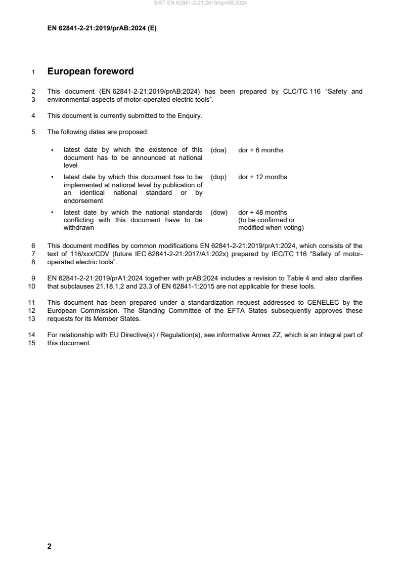 2 This document (EN 62841-2-21:2019/prAB:2024) has been prepared by CLC/TC 116 “Safety and