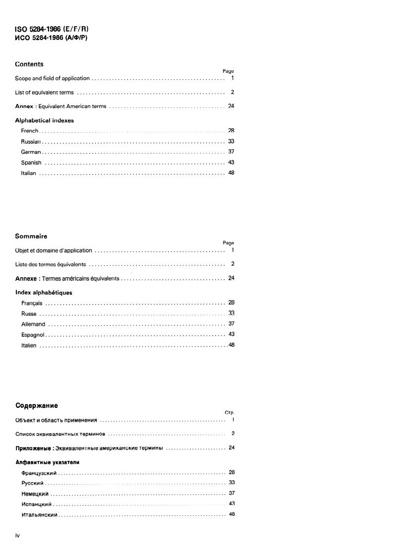 ISO 5284 provides an alphabetically ordered list of equivalent terms in English (with American variants where different), French, German, Italian, Spanish, and Russian, plus alphabetical indexes for each language and an annex listing equivalent American terms.