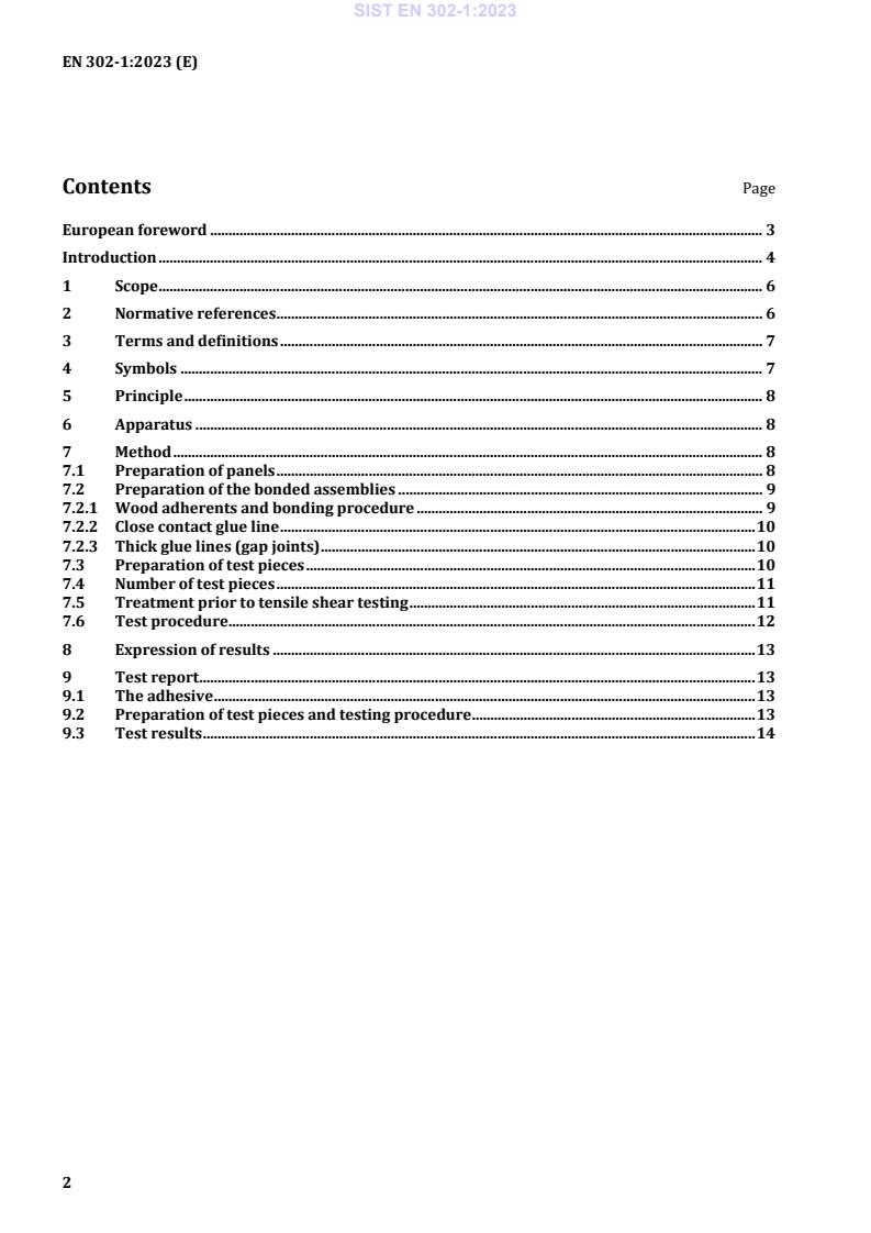 This document specifies a method for determining the shear strength of adhesive bonds in close contact glue line and thick glue line. It is applicable to the following applications: a) for assessing the compliance of adhesives with EN 301, EN 15425, EN 16254, EN 17334 and EN 17418; b) for assessing the suitability and quality of adhesives for load-bearing timber structures. This test is intended primarily to obtain performance data for the classification of adhesives for load-bearing timber structures according to their suitability for use in defined climatic environments. This method is not intended for use to provide for structural design and does not necessarily represent the performance of the bonded member in service.