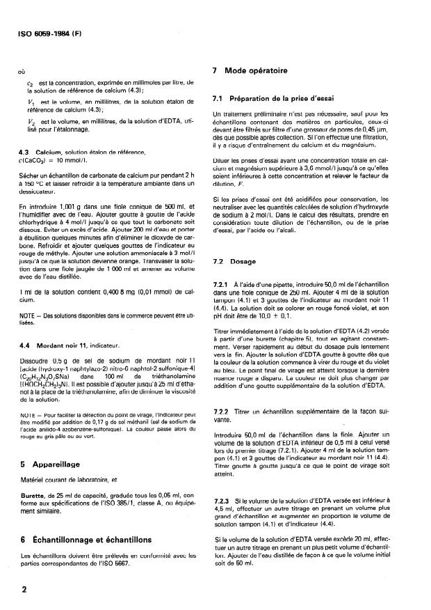 Keywords: ISO 6059, calcium determination, magnesium determination, EDTA titration, water quality standard, water hardness, water analysis, groundwater testing, surface water testing, drinking water quality, water hardness units, complexometric titration.