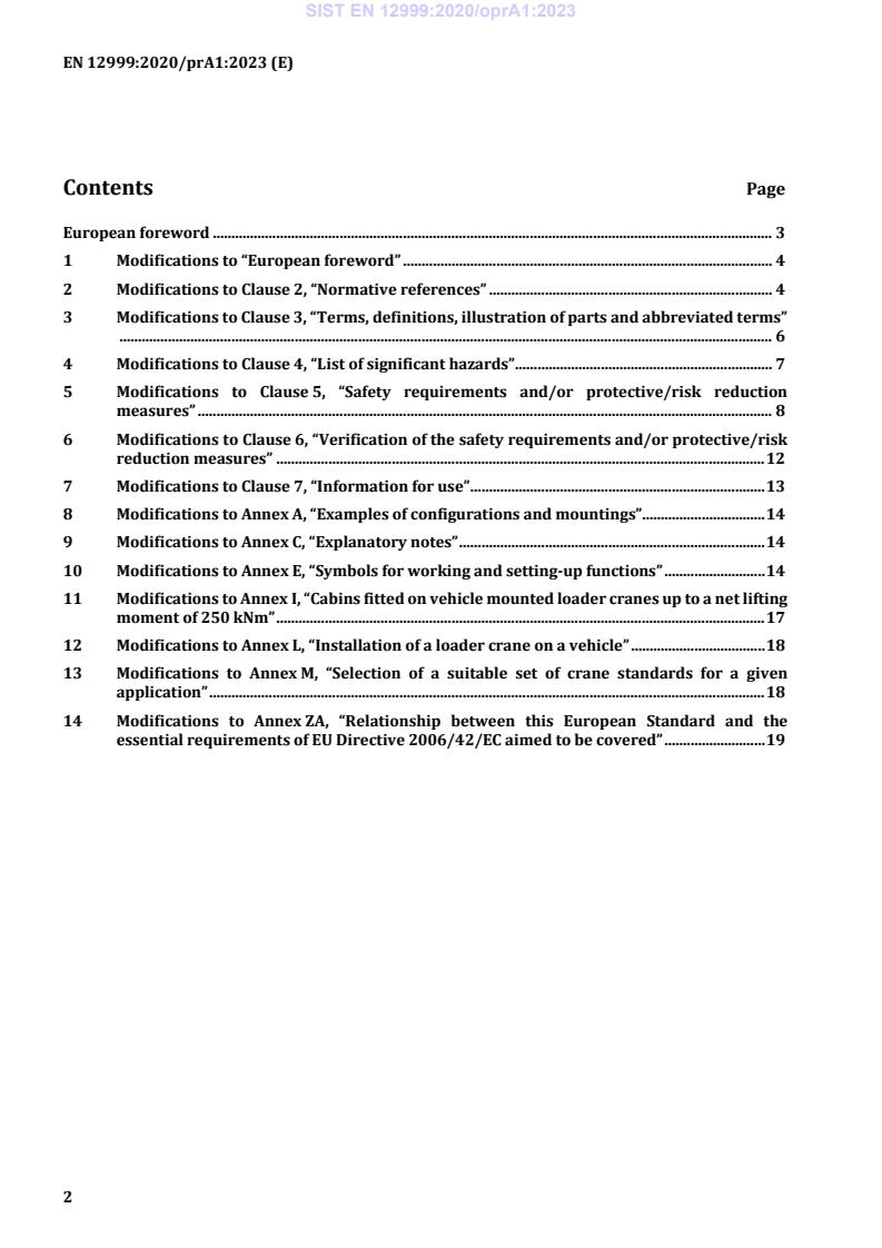 This amendment (prA1/A1) updates definitions, safety requirements and verification methods. It clarifies operator cabin types, stabilizer leg hazards, control station requirements and selected verification procedures while maintaining alignment with EU directives and related crane standards.