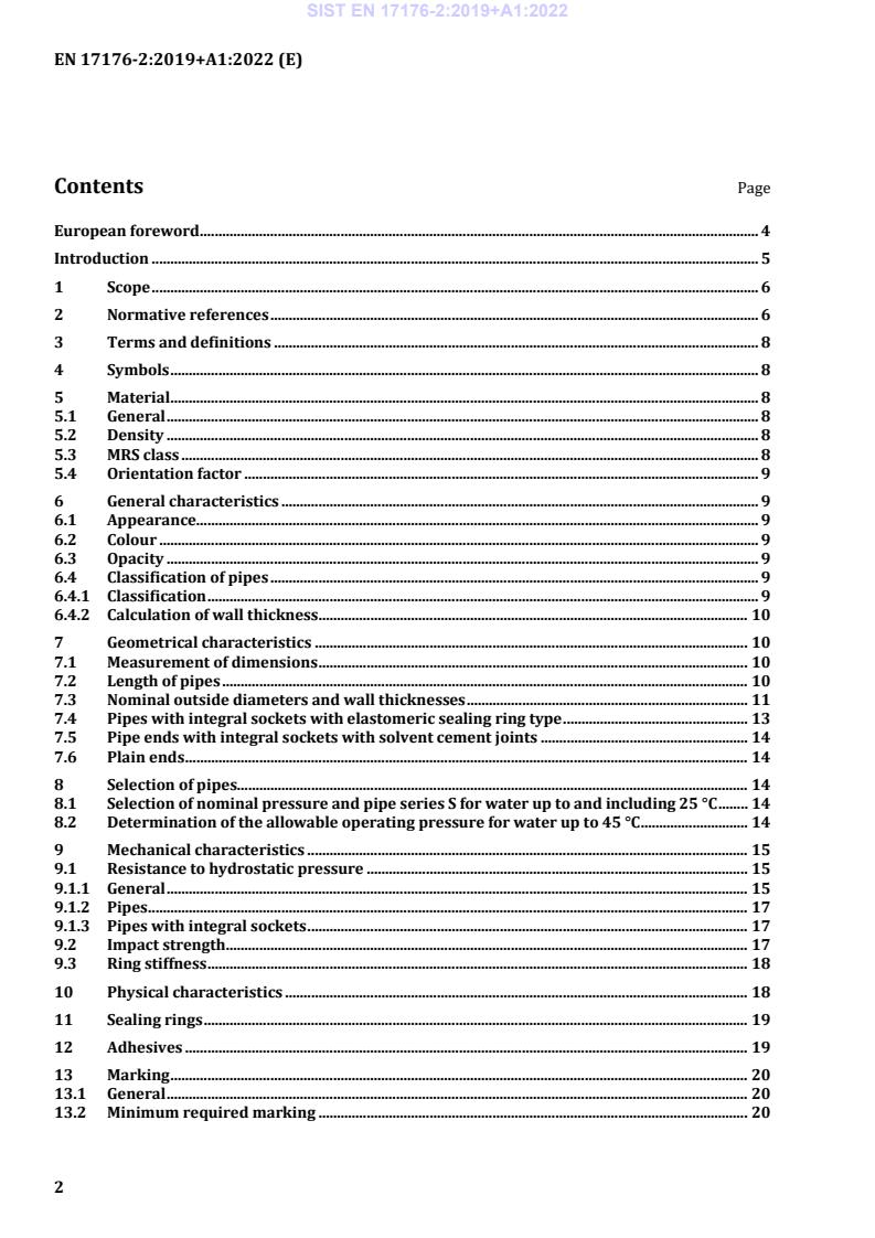 EN 17176-2:2019+A1:2022 is the CEN standard that specifies requirements for solid‑wall oriented unplasticized poly(vinyl chloride) (PVC‑O) pipes used in pressured water systems and buried or above‑ground drainage, sewerage, treated wastewater and irrigation (when protected from direct sunlight). This Part 2 document defines the pipe characteristics, geometrical and mechanical requirements, and the test parameters for the referenced test methods. It is part of the EN 17176 PVC‑O system series and includes Amendment A1 (2022).