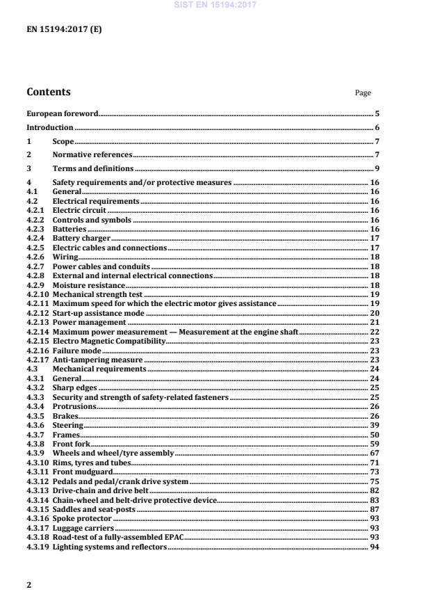 Ta evropski standard je namenjen obravnavi koles z električnim pomožnim pogonom, ki imajo največjo trajno nazivno moč 0,25 kW, pri čemer se izhodna moč postopno zmanjšuje in končno prekine, ko vozilo doseže hitrost 25 km/h ali prej, če kolesar preneha poganjati pedale. Ta evropski standard določa varnostne zahteve in preskusne metode za oceno načrta in montaže koles z električnim pomožnim pogonom ter podsklopov za sisteme, ki uporabljajo akumulator z enosmerno napetostjo do 48 V ali integrirani polnilnik akumulatorja z vhodno močjo 230 V. Ta evropski standard določa zahteve in preskusne metode za sisteme upravljanja porabe motorja, električne tokokroge, vključno s sistemom polnjenja, za oceno načrta in montaže koles z električnim pomožnim pogonom ter podsklopov za sisteme, ki uporabljajo akumulator z enosmerno napetostjo do vključno 48 V ali integrirani polnilnik akumulatorja z vhodno močjo 230 V.