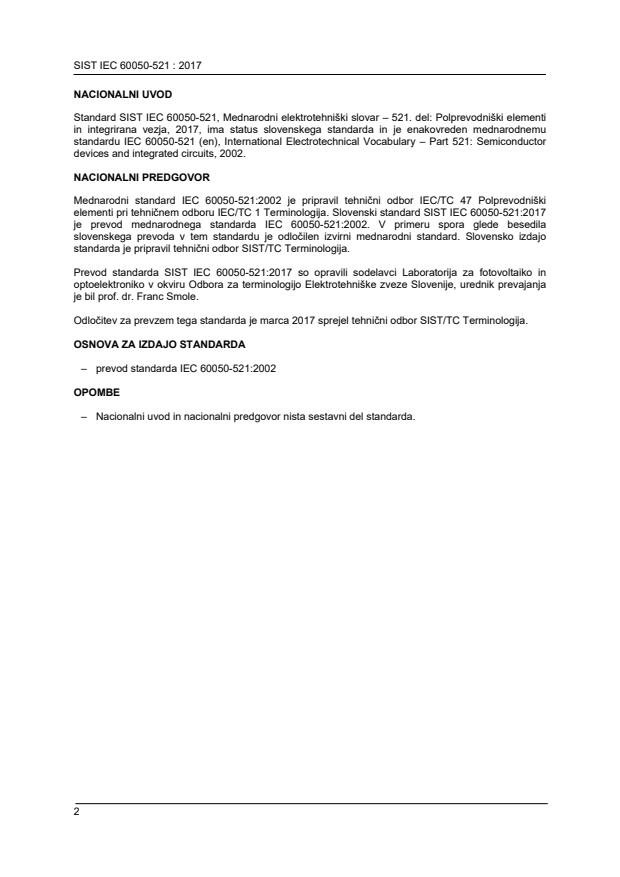 SIST IEC 60050-521:2017, titled International Electrotechnical Vocabulary - Part 521: Semiconductor devices and integrated circuits, is a comprehensive international standard developed by the International Electrotechnical Commission (IEC). This horizontal standard, prepared under IEC Guide 108, serves as a multilingual vocabulary providing precise terminology and definitions used globally in the fields of semiconductor devices and integrated circuits. Initially published in 1984 and updated in its second edition in 2002, the document enhances clarity and consistency in technical communication across electrical engineering, electronics, and microelectronics sectors.