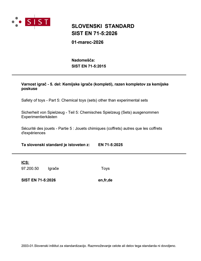 SIST EN 71-5:2026