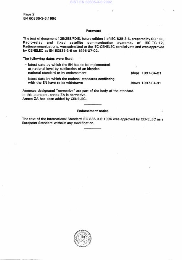SIST EN 60835-3-6:2002 is classified under the following ICS (International Classification for Standards) categories: 33.060.30 - Radio relay and fixed satellite communications systems. The ICS classification helps identify the subject area and facilitates finding related standards.