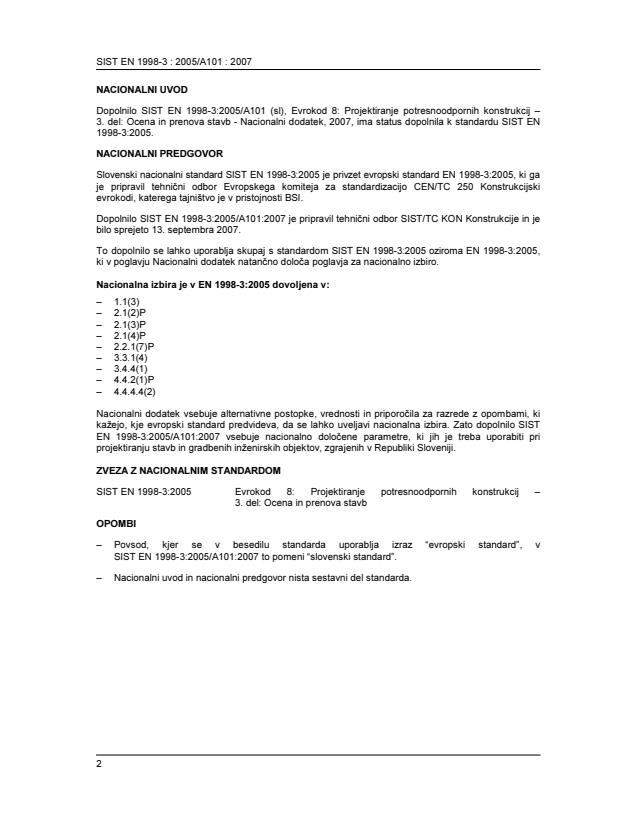 (2) Za vsa mesta, kjer je dovoljena nacionalna izbira, so v SIST EN 1998-3:2005 podane opombe, seznam točk s temi opombami pa je podan v nacionalnem predgovoru k SIST EN 1998-3:2005.