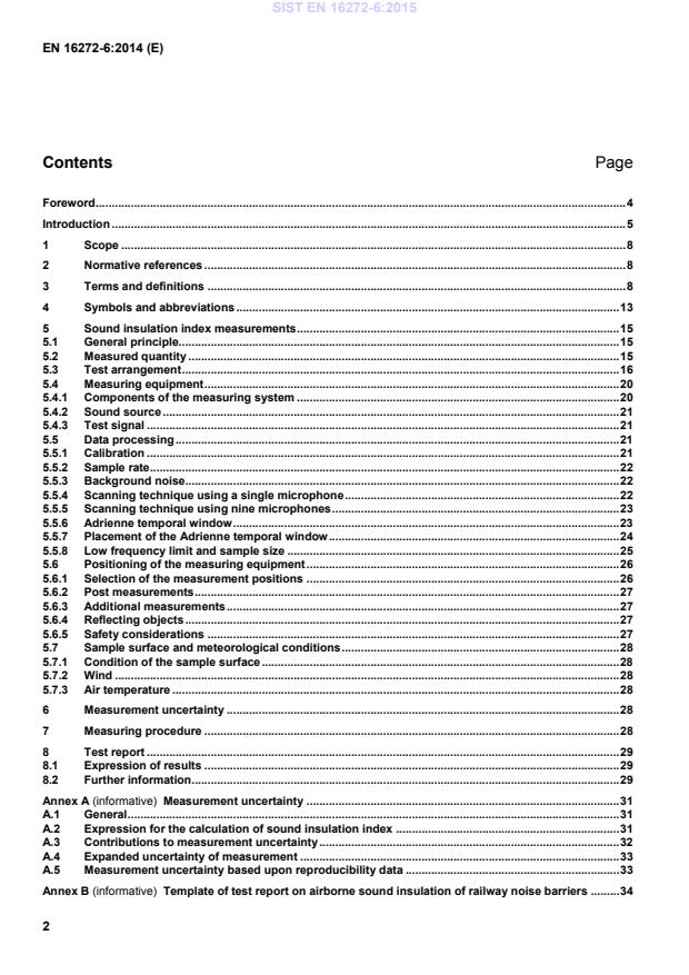 Template of test report on airborne sound insulation of railway noise barriers . 34 SIST EN 16272-6:2015