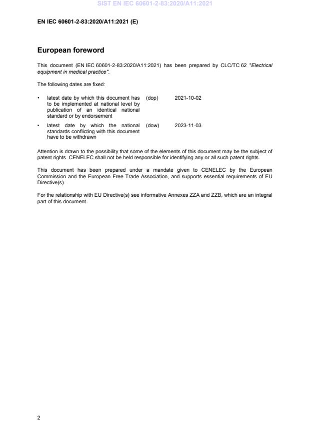 This A11 introduces a revised Annex ZA & Annex ZZ to EN IEC 60601-2-83:2020 in view of offering it for citation in OJEU under MDD (93/42/EEC) and MDR (2017/745)