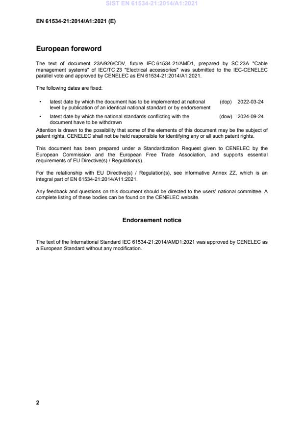 parallel vote and approved by CENELEC as EN 61534-21:2014/A1:2021.