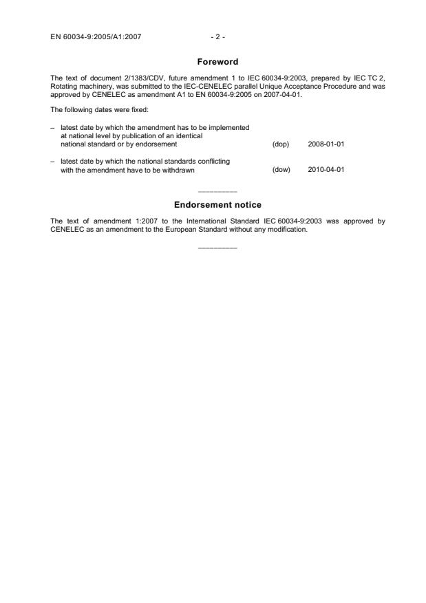 approved by CENELEC as amendment A1 to EN 60034-9:2005 on 2007-04-01.