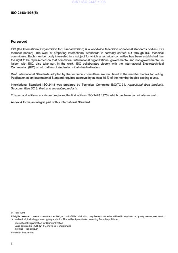 SIST ISO 2448:1998 is classified under the following ICS (International Classification for Standards) categories: 67.080.01 - Fruits, vegetables and derived products in general. The ICS classification helps identify the subject area and facilitates finding related standards.