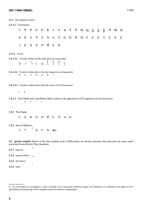 This International Standard establishes a system for the transliteration of Thai characters into Roman characters. One set of