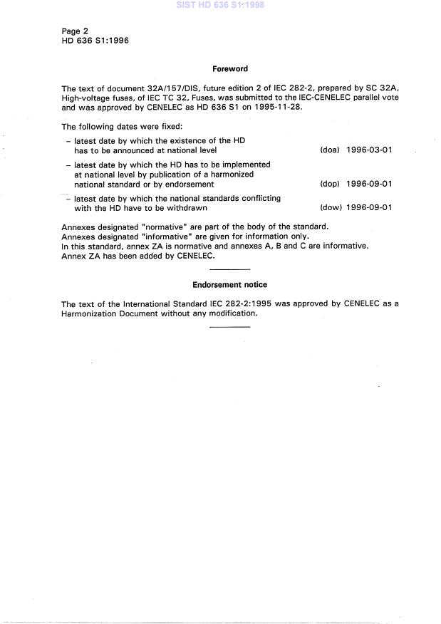 SIST HD 636 S1:1998 is a standardization document published by the Slovenian Institute for Standardization (SIST). Its full title is "High-voltage fuses -- Part 2: Expulsion fuses". This standard covers: Specifies requirements for expulsion fuses designed for use outdoors or indoors on alternating current systems of 50 Hz and 60 Hz, and of rated voltages exceeding 1 000 V.