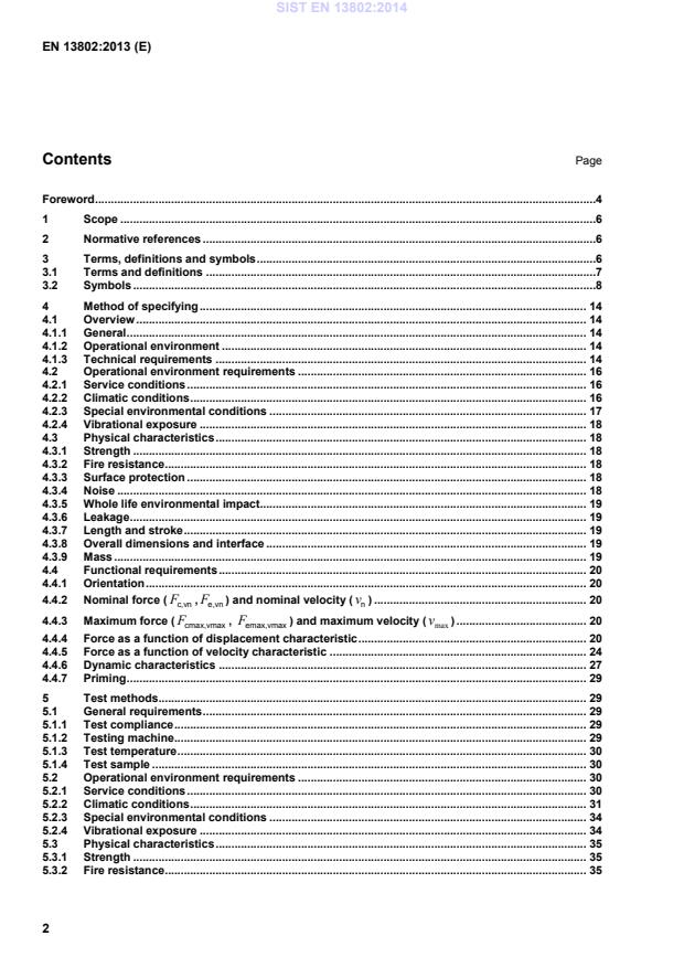 0max>−=maxu,eLLd If necessary (especially for friction characteristic type dampers), the delivery length delLshall be defined. By default, mm 5idel−=LL. 4.3.8 Overall dimensions and interface The damper specification shall define the maximum overall dimensions required for the damper, determined from a defined volume-envelope. The overall dimensions shall be determined using simple volume elements (such as cylinders) in a set of reference co-ordinates linked to the damper when it is assumed fully compressed (minu,L) or fully extended (maxu,L). See Figure 2 and Figure 3. The overall dimensions of the damper shall remain within the specified volume envelope. It is recommended to use typical dimensions given in Annex B. 4.3.9 Mass The mass of the specified damper shall be given. A maximum mass limit may be specified in the damper specification. SIST EN 13802:2014