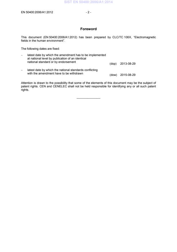 This document (EN 50400:2006/A1:2012) has been prepared by CLC/TC 106X, “Electromagnetic