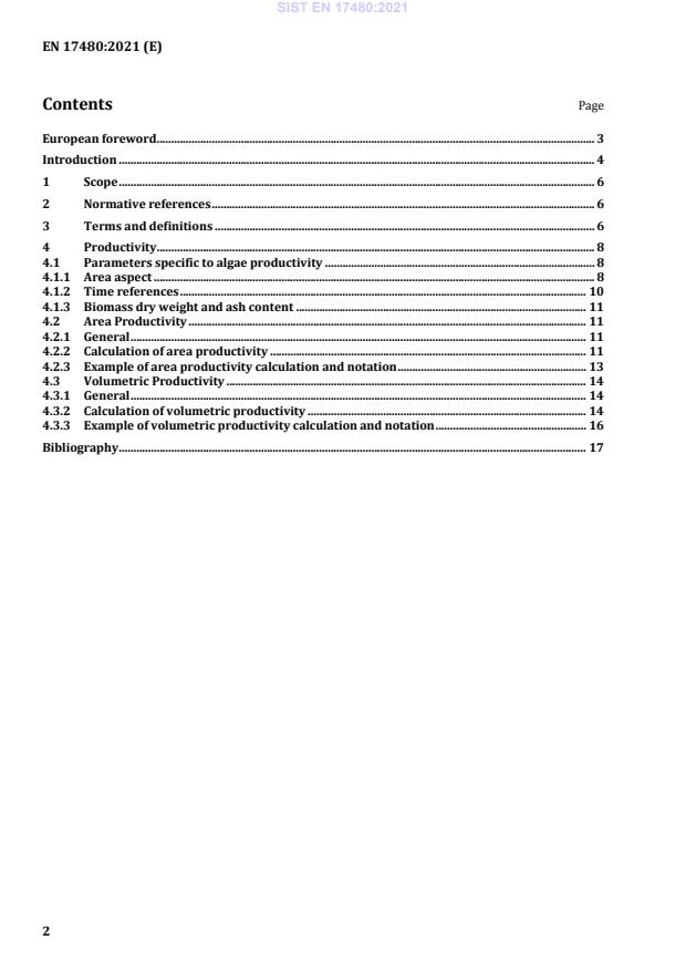 SIST EN 17480:2021 is a standard published by the Slovenian Institute for Standardization (SIST). Its full title is "Algae and algae products - Methods for the determination of productivity of algae growth sites". This standard covers: This document specifies the methods to be used for the determination of productivity of algae growth sites. This document excludes methods for sampling, harvesting and pre-/postprocessing. Excluded as well is “wild growth”, which is defined as algae growing in nature without human interference except when harvesting the algae.