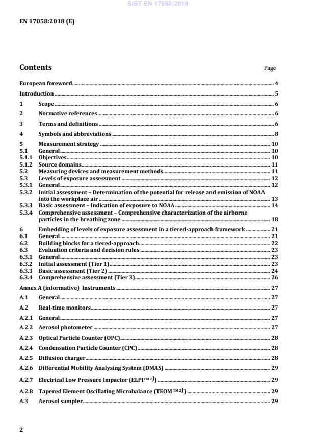 Ta evropski standard opisuje različne stopnje ocene izpostavljenosti pri vdihavanju nanopredmetov ter njihovih agregatov in aglomeratov (NOAA) ter vrednotenje rezultatov v obliki samostojne ocene ali vdelano v okvir večstopenjskega pristopa. Medtem ko se ta evropski standard osredotoča na oceno nanopredmetov, se pristop uporablja za izpostavljenost povezanim aglomeratom in agregatom, tj. nanopredmetom ter njihovim agregatom in aglomeratom, ter delcem, ki se sproščajo iz nanokompozitov in izdelkov, ki jih omogoča nanotehnologija.