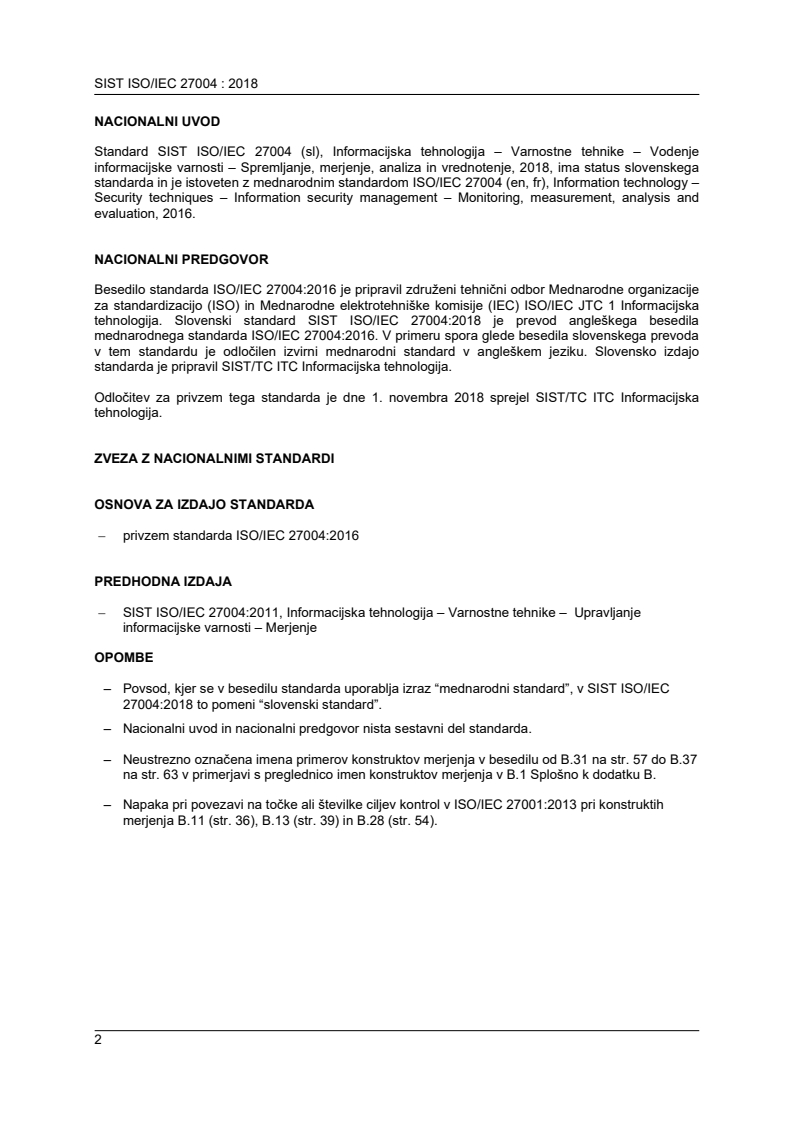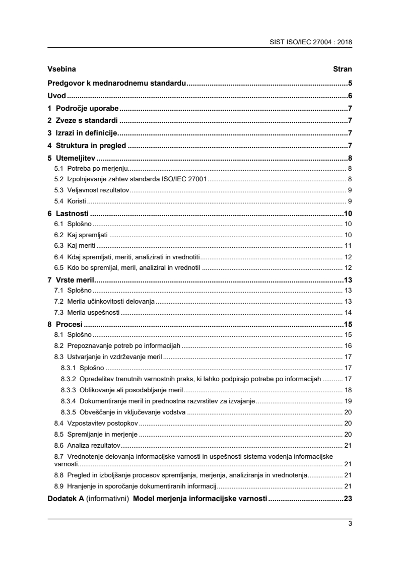 Ta dokument podaja smernice za pomoč organizacijam pri ocenjevanju uspešnosti informacijske varnosti in učinkovitosti sistema upravljanja informacijske varnosti za namene izpolnitve zahtev standarda ISO/IEC 27001:2013, 9.1. Določa: