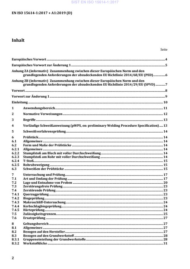 Zwei Stufen der Schweißverfahrensprüfung sind angegeben, um eine große Anzahl von Schweiß-konstruktionen abzudecken. Diese sind mit den Nummern 1 und 2 bezeichnet. Bei Stufe 2 ist der Prüfumfang größer und die Geltungsbereiche sind eingeschränkter als bei Stufe 1.