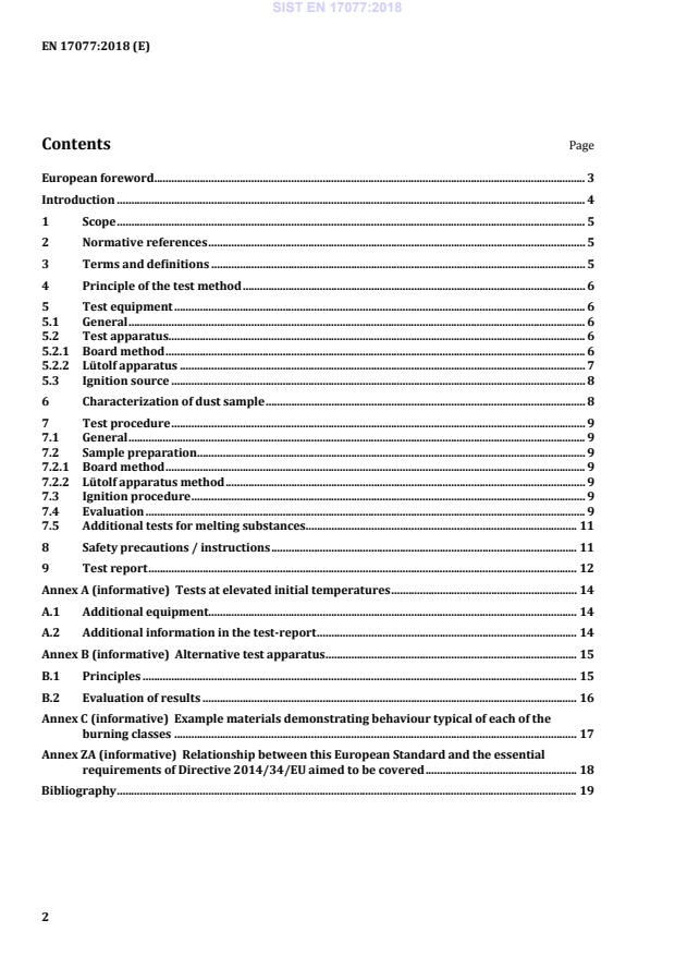 Ta evropski standard opisuje preskusno metodo za ugotavljanje obnašanja plasti prahu pri gorenju pod določenimi začetnimi pogoji glede pretoka zraka, temperature in vžiga.