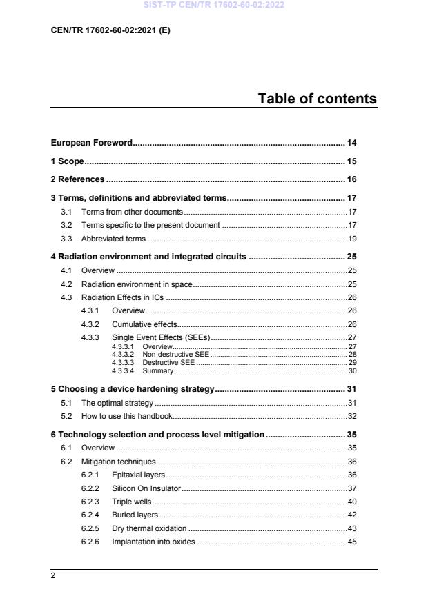 SIST-TP CEN/TR 17602-60-02:2022 - "Space product assurance - Techniques for radiation effects mitigation in ASICs and FPGAs handbook" is a CEN/CENELEC technical report adopted by SIST that compiles practical mitigation techniques for radiation effects in integrated circuits intended for space. The handbook concentrates on ASICs and FPGAs and excludes other IC categories such as power devices, MMICs and sensors. It is an ECSS-style handbook: guidance and best practices, not prescriptive requirements.