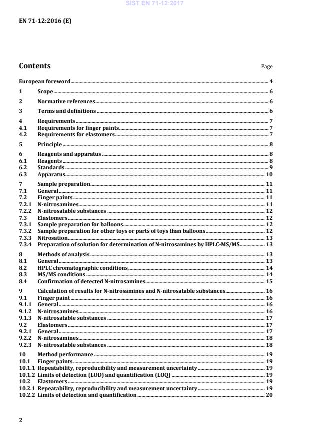 Ta evropski standard določa zahteve in preskusne metode za N-nitrozamine in N-nitrozabilne snovi za: igrače in dele igrač, izdelane iz elastomerov in namenjene uporabi s strani otrok, mlajših od 36 mesecev; igrače in dele igrač, izdelane iz elastomerov in namenjene vstavljanju v usta; prstne barve za otroke, mlajše od 36 mesecev. PRIMERI Igrače, ki so narejene iz elastomerov, so baloni in grizala.