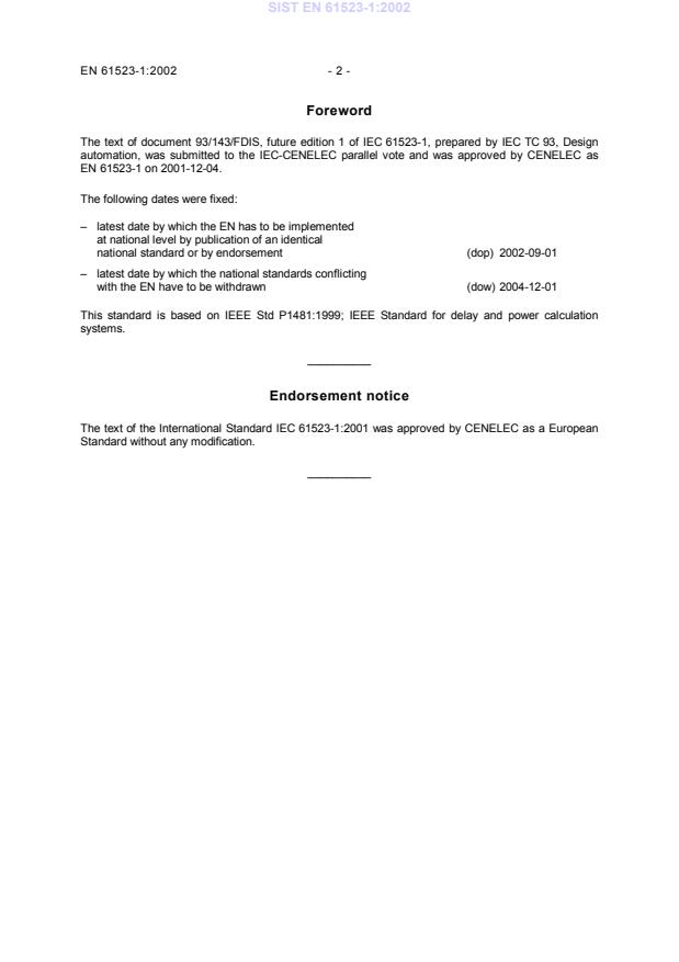 Delay and power calculation standards - Part 1: Integrated circuit delay and power calculation systems (IEC 61523-1:2001)