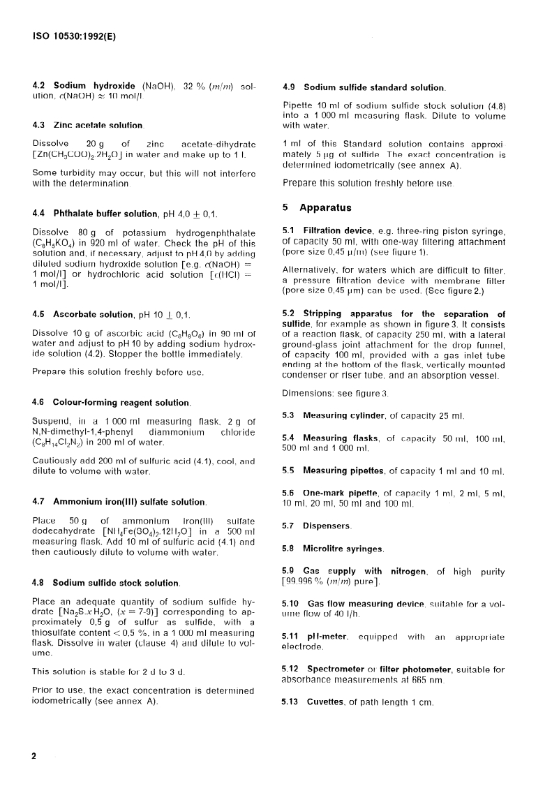 - Annex A (ISO 10530) - normative procedure for standardizing sulfide stock solutions by iodometry.