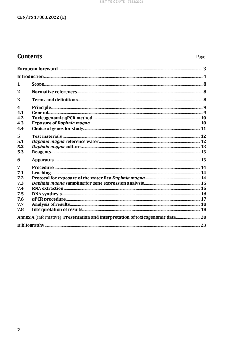 SIST-TS CEN/TS 17883:2023 is a technical specification published by the Slovenian Institute for Standardization (SIST). Its full title is "Environmental characterization of leachates from waste and soil using reproductive and toxicological gene expression in Daphnia magna". This standard covers: This document specifies the crucial steps of a quantitative real-time polymerase chain reaction (qPCR) method to quantify the abundance of specific mRNA molecules extracted from Daphnia magna. The method allows the identification of molecular responses to exposures for potentially toxic substances through the analysis of the abundance of specific mRNA molecules. In this document, the central genes involved in reproductive and toxic responses are included. NOTE The selection of genes can be adapted to specific exposure conditions, for example, exposure to known toxic substances, by adding genes known to respond to a specific insult. The present method allows for rapid, robust and sensitive detection of molecular responses and can be used to analyse the toxic effects of water leachates from soil and waste. The method gives information of the concentration of a substance or test-liquid at which toxic effects begin to occur prior to observations of reproductive or toxic effects at higher levels of organization, which reduces the need for the use of safety factors in toxicity assessment. The method is useful in several types of risk assessment. In this document, the genes studied are appropriate for the assessment of the risks when recycling materials and for the classification of waste, but the method can be adapted to other types of risk assessment by including other genes.