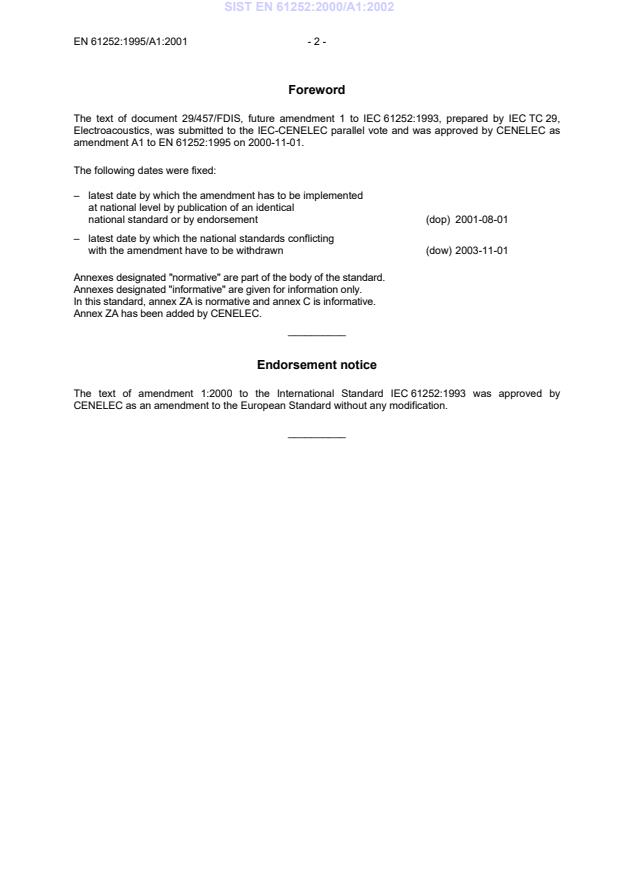 SIST EN 61252:2000/A1:2002 is classified under the following ICS (International Classification for Standards) categories: 13.140 - Noise with respect to human beings; 17.140.50 - Electroacoustics. The ICS classification helps identify the subject area and facilitates finding related standards.