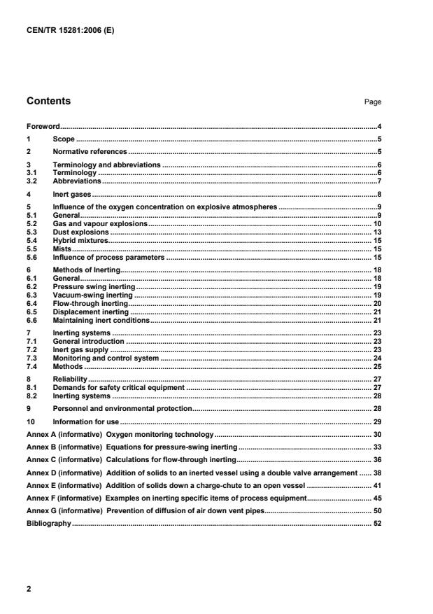SIST-TP CEN/TR 15281:2006 is a technical report published by the Slovenian Institute for Standardization (SIST). Its full title is "Guidance on Inerting for the Prevention of Explosions". This standard covers: Inerting is a measure to prevent explosions. By feeding inert gas into a system which is to be protected against an explosion, the oxygen content is reduced below a certain concentration until no explosion can occur. The addition of sufficient inert gas to make any mixture non-flammable when mixed with air (absolute inerting) is only required in rare occasions. The requirements for absolute inerting will be discussed. Inerting may also be used to influence the ignition and explosion characteristics of an explosive atmosphere. The guidance given on inerting is also applicable to prevent an explosion in case of a fire. The following cases are not covered by the guideline: - admixture of an inert dust to a combustible dust; - inerting of flammable atmospheres by wire mesh flame traps in open spaces of vessels and tanks; - fire fighting; - avoiding an explosive atmosphere by exceeding the upper explosion limit of a flammable substance. Inerting which is sufficient to prevent an explosion is not a protective measure to prevent fires, self-ignition, exothermic reactions or a deflagration of dust layers and deposits.