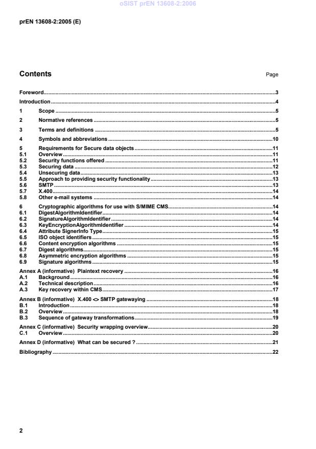 prEN 13608-2 - “Health informatics - Security for healthcare communication - Part 2: Secure data objects” (CEN) defines a standard way to secure arbitrary octet strings used in European healthcare. The Part 2 draft describes mechanisms to preserve confidentiality, data integrity and accountability (authentication) for messages or data objects (for example EDIFACT messages, patient records) so they can be transported over open networks or stored in unsecured repositories. The standard is transport‑agnostic and builds on existing specifications such as S/MIME/CMS and ASN.1.