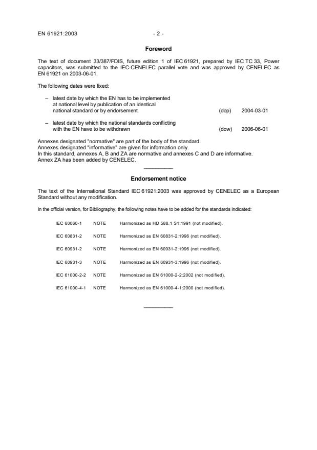 EN 61921 is endorsed as the European adoption of IEC 61921:2003 and cross-references several standards such as: