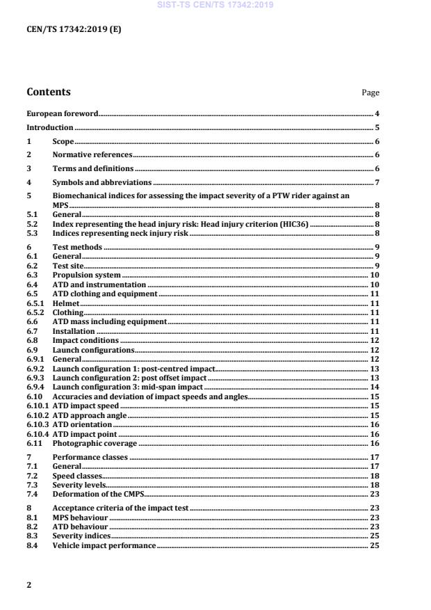 CEN/TS 17342:2019 is a European Technical Specification for motorcycle road restraint systems (MPS) intended to reduce the impact severity for powered two‑wheeler (PTW) riders who slide into safety barriers after falling from their vehicle. The document defines test procedures, biomechanical indices and performance classes for systems fitted to barriers (or barriers with inherent PTW protection). It focuses on rider impacts while sliding along the ground and excludes vehicle containment performance (covered by EN 1317‑1 / EN 1317‑2).