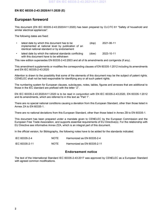 This document (EN IEC 60335-2-43:2020/A11:2020) has been prepared by CLC/TC 61 "Safety of household and