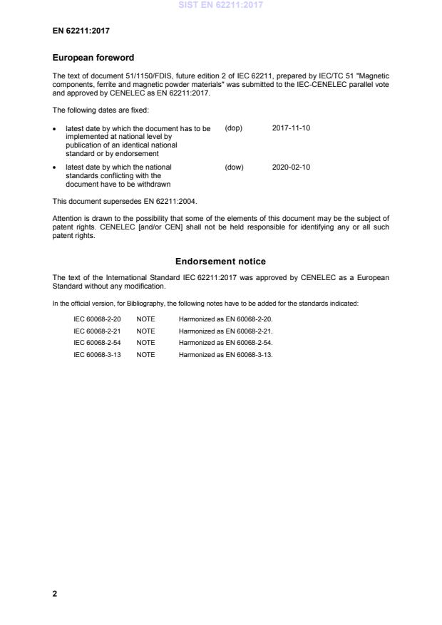 SIST EN 62211:2017 is classified under the following ICS (International Classification for Standards) categories: 29.100.10 - Magnetic components. The ICS classification helps identify the subject area and facilitates finding related standards.