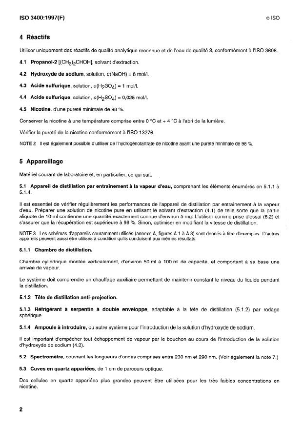 NOTE 1 L’ISO 4387 prescrit l’utilisation de la méthode par chromatographie en phase gazeuse pour le dosage de la nicotine