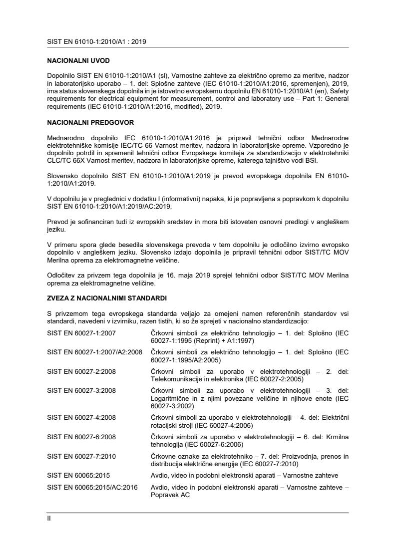 Slovensko dopolnilo SIST EN 61010-1:2010/A1:2019 je prevod evropskega dopolnila EN 61010-