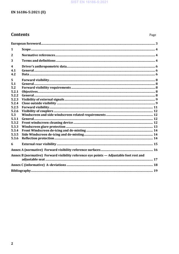 SIST EN 16186-5:2021 is a standard published by the Slovenian Institute for Standardization (SIST). Its full title is "Railway applications - Driver's cabs - Part 5: External visibility for tram vehicles". This standard covers: This document specifies the external front and rear visibility conditions from cabs of tram vehicles and the associated assessment method. This document applies to vehicles operating on tram networks. This document does not apply to driver's auxiliary desks. This standard is not intended to be applied for tram train.