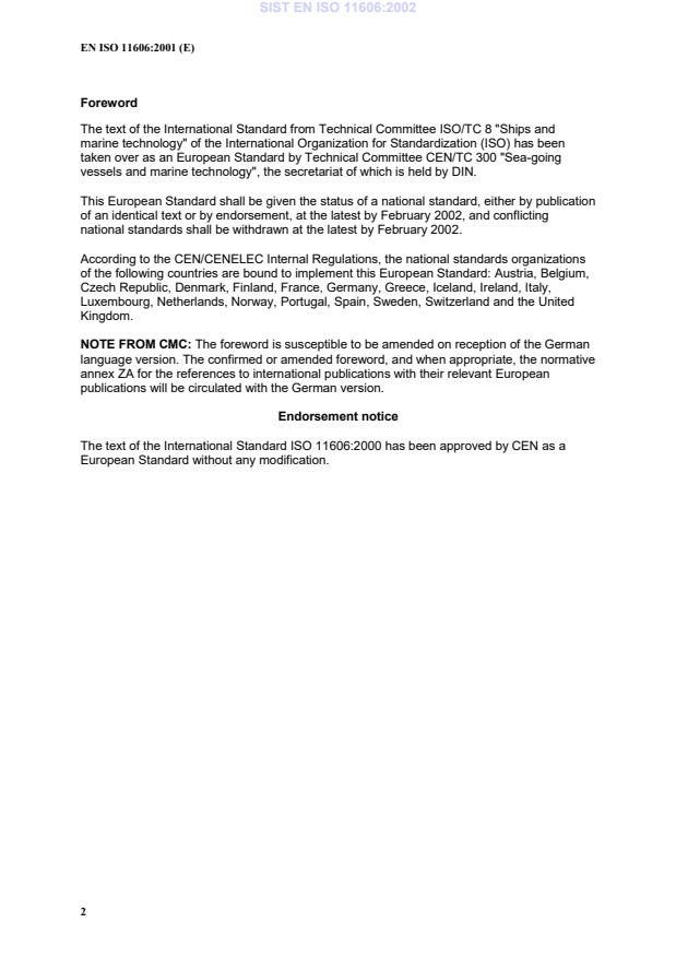 SIST EN ISO 11606:2002 is classified under the following ICS (International Classification for Standards) categories: 47.020.70 - Navigation and control equipment. The ICS classification helps identify the subject area and facilitates finding related standards.