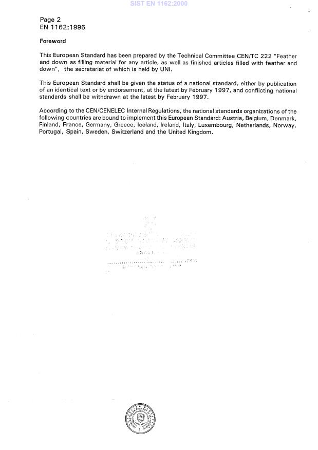 SIST EN 1162:2000 is a standard published by the Slovenian Institute for Standardization (SIST). Its full title is "Feather and down - Test methods - Determination of the oxygen index number". This standard covers: This European Standard specifies a method for determining the oxygen index number of feathers and down by means of a titration method.