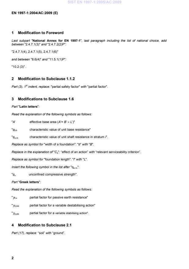 Part (1): 1st line, replace: “equation (2.7)” with “equation (2.7c)”. SIST EN 1997-1:2005/AC:2009