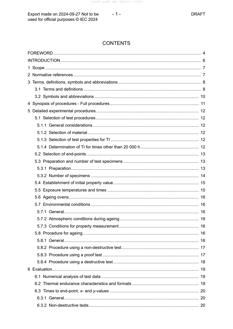 Keywords: IEC 60216-1, FprEN IEC 60216-1:2025, thermal endurance, temperature index, ageing procedures, insulating materials, accelerated ageing, Arrhenius relationship, thickness sensitivity.