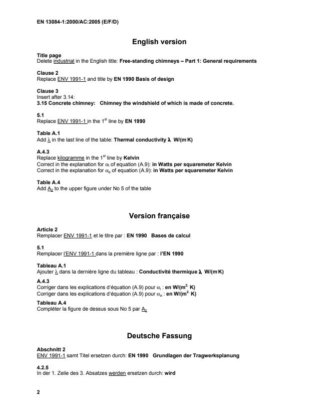 Freistehende Schornsteine - Teil 1: Allgemeine Anforderungen This corrigendum becomes effective on 9 March 2005 for incorporation in the three official language versions of the EN.