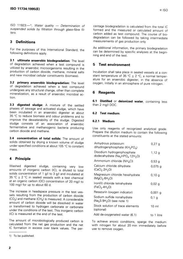 ISO 11734:1995 - Water quality -- Evaluation of the "ultimate" anaerobic biodegradability of organic compounds in digested sludge -- Method by measurement of the biogas production