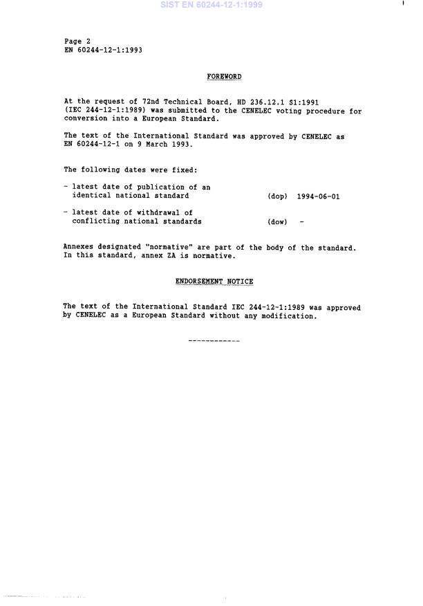 Ta slovenski standard je istoveten z: EN 60244-12-1:1993