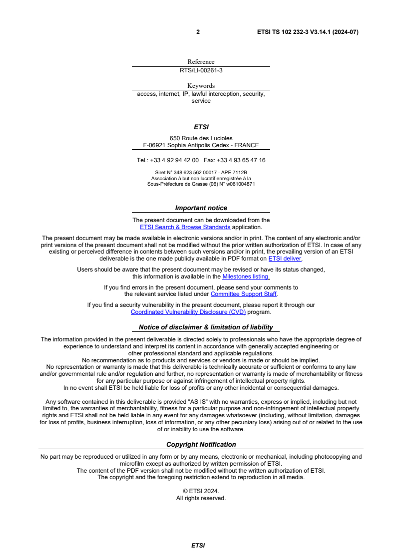 ETSI TS 102 232-3 V3.14.1 (2024-07) - Lawful Interception (LI); Handover Interface and Service-Specific Details (SSD) for IP delivery; Part 3: Service-specific details for internet access services