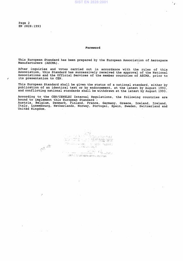 Ta slovenski standard je istoveten z: EN 2828:1993